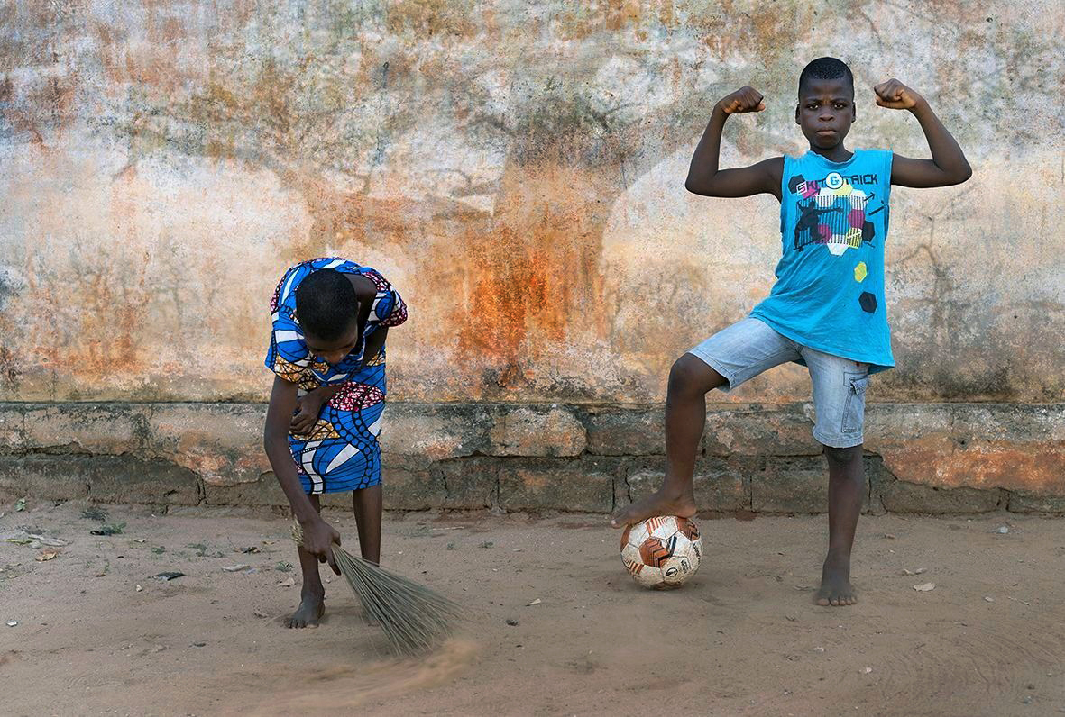 Malgré le mouvement d’émancipation de la fin du XXe siècle, où la lutte pour l’égalité entre les hommes et les femmes a imposé une série d’avancées démocratiques et sociales indéniables, le patriarcat, comme mode de domination, semble avoir encore de beaux jours devant lui. La situation des femmes dans nos sociétés contemporaines se révèle disparate. Elles demeurent bien souvent placées sous l’autorité d’un père, d’un mari ou réduite à une image stéréotypée dans le domaine familial et/ou professionnel. Cette série photographique aborde plus spécifiquement, par la mise en scène et/ou la surimpression, les violences faites aux femmes dans la vie civile et durant les périodes de guerre où il est beaucoup plus dangereux d’être une mère ou une fillette qu’un soldat. Les agressions physiques, psychologiques, ou le viol quasi systématique des femmes et des jeunes filles apparaissent clairement comme un mal sociétal protéiforme malheureusement intemporel.